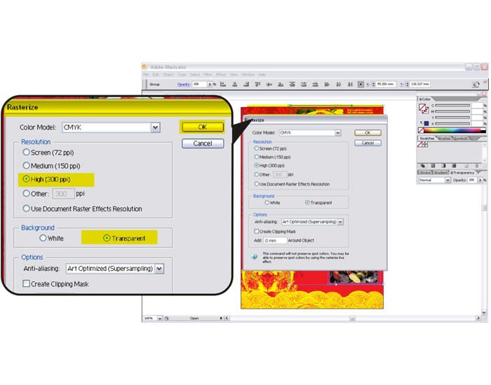 Step 02 – Resterize the images and Background Design to 300dpi (single Background images)