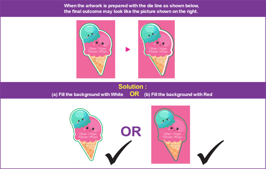 * Customer is advised to revise artwork when these problems are detected. * Expressprint shall not be held liable for any of defect in printing outcome due to artwork sent not correctly prepared as advised.