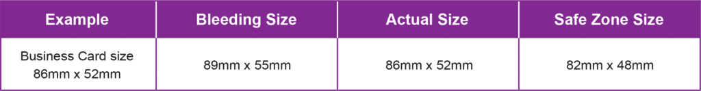 - Please refer to the example below how to determine your Artwork Size, Safe Zone & Full Bleed.