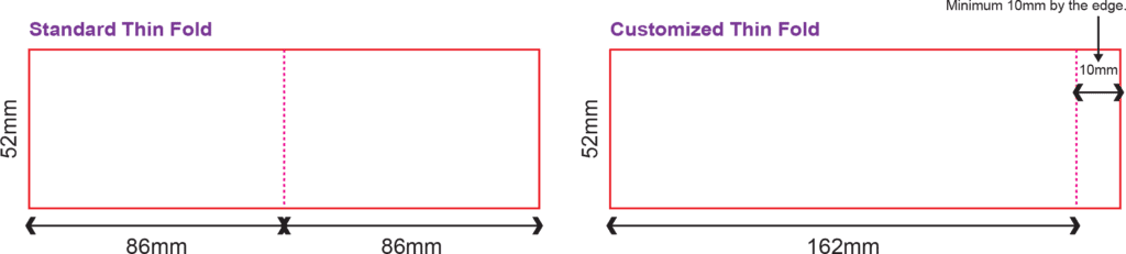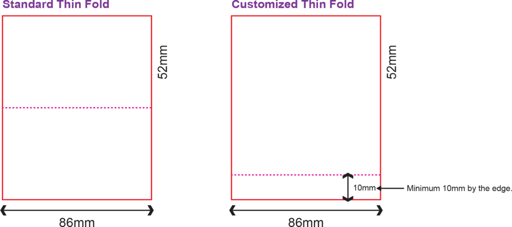 - Customized creasing are acceptable, minimum 10mm by the edge