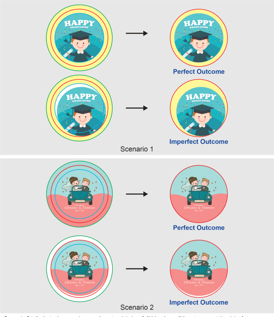 Scenario 2 tells that, please make sure the artwork is in a full bleed condition, to prevent the risk of misregistration.