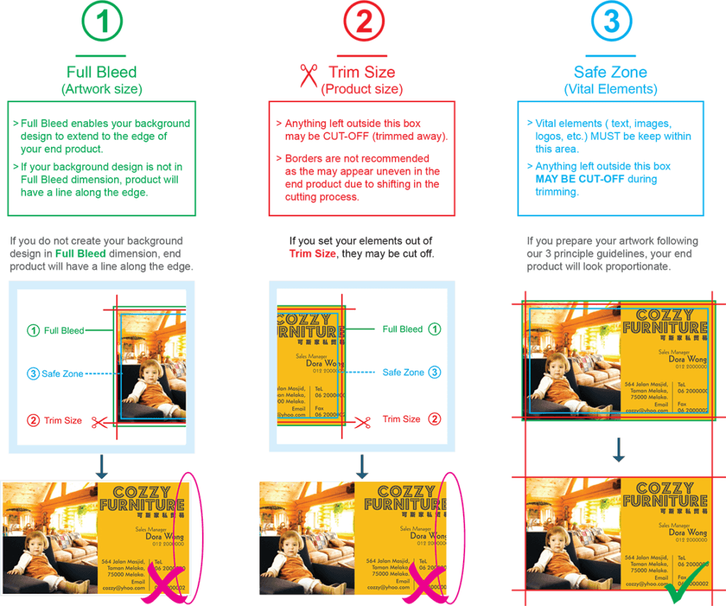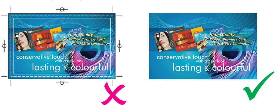 - Extend your design to the bleed area to ensure no white edges after trimming.