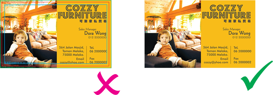 2. Please remove all guidelines and text description before you send your artwork file to us.