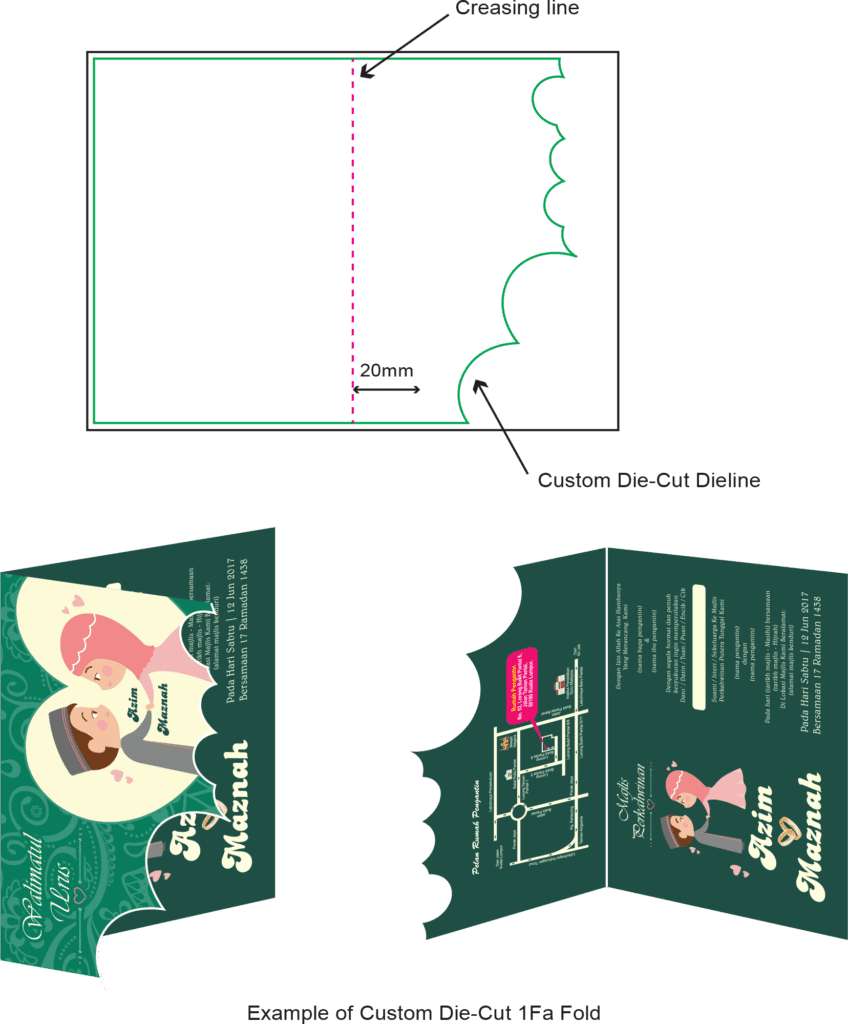 CUSTOM DIE-CUT IS ONLY ALLOWED ON ONE SIDE OF 1FA FOLD #