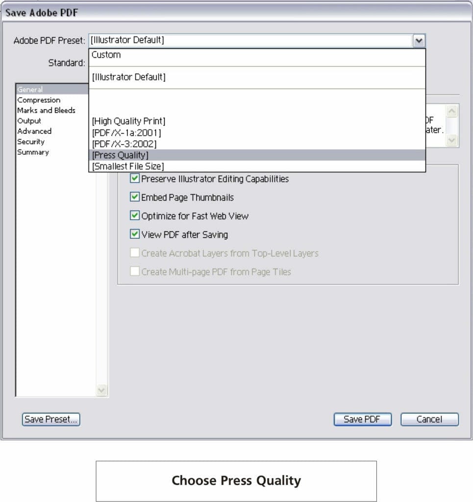 Step 11 – Choosing PDF Preset