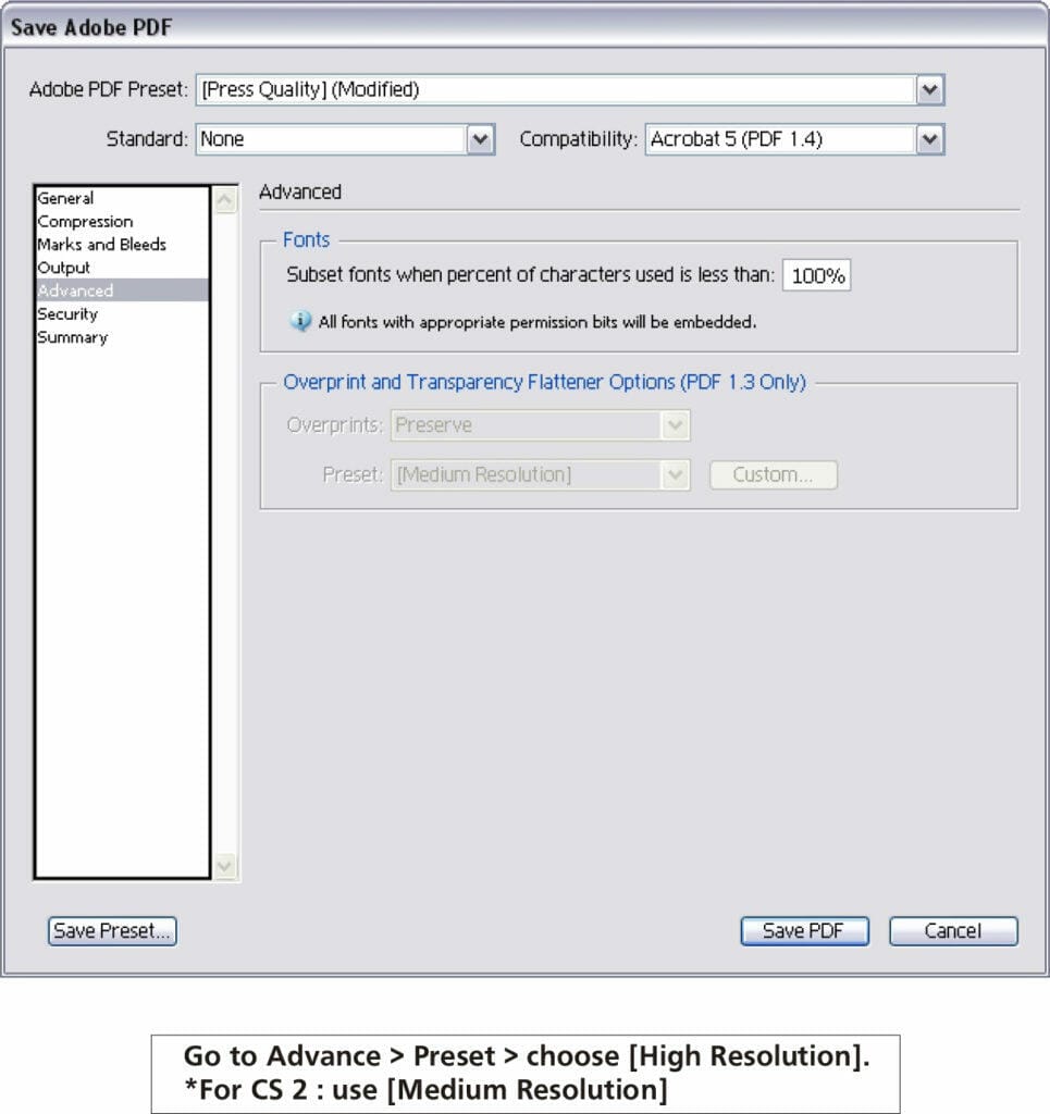 Step 03 – Choosing PDF Preset