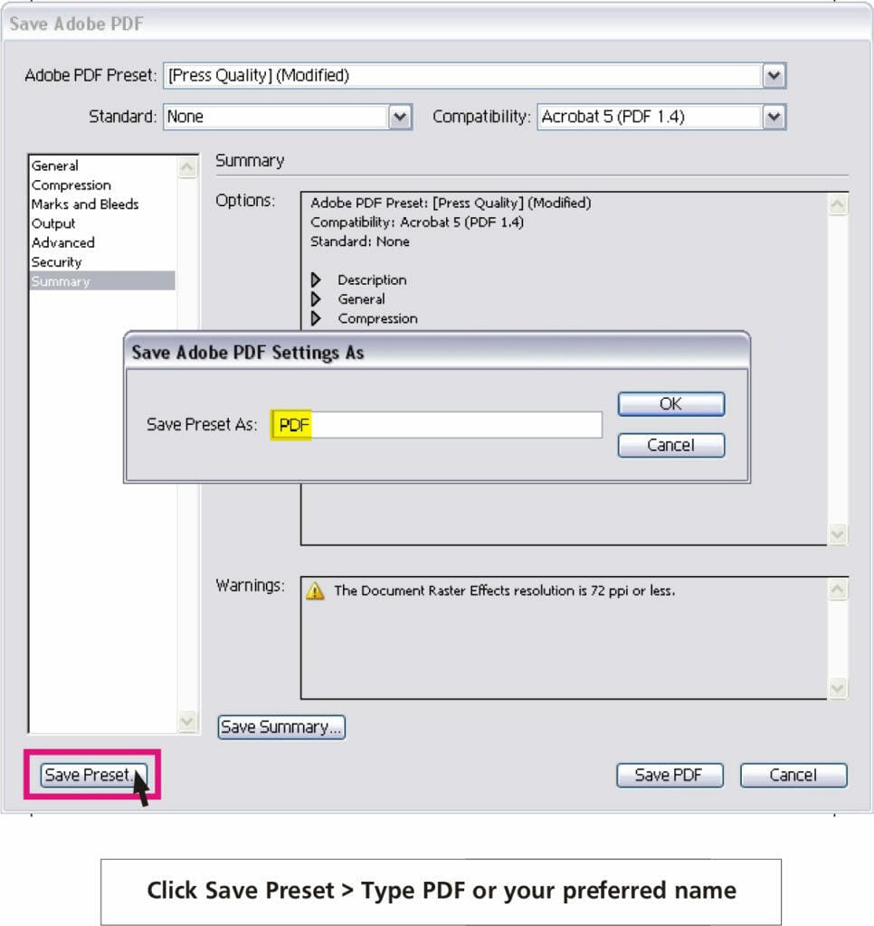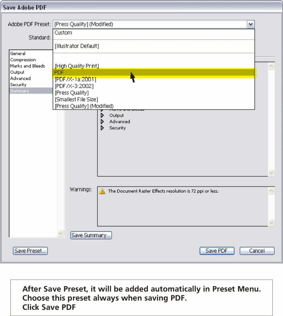 Step 10 – Saving PDF Preset