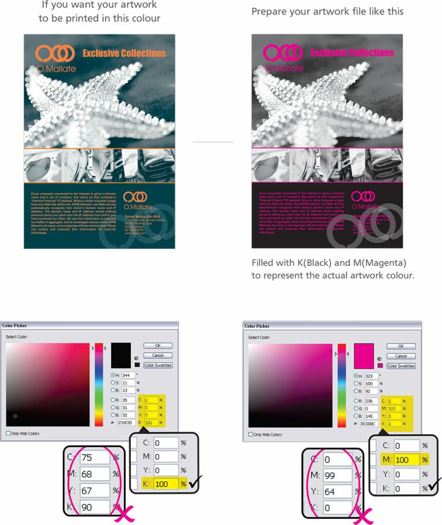 Step 01 – Fill in 100K (Black as Colour 1) and 100M (Magenta as Colour 2)