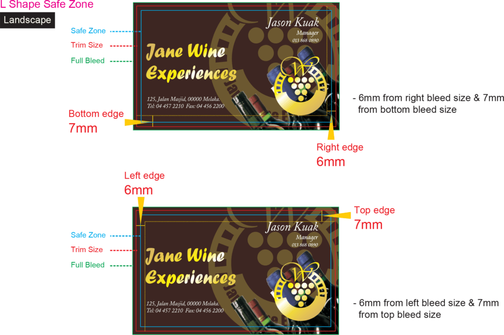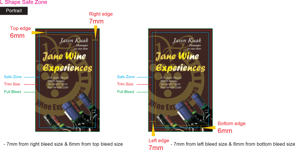 2) Hot stamping artwork (image) can be bleed out (only within L shape safe zone), but stamping for important text MUST within Safe Zone.