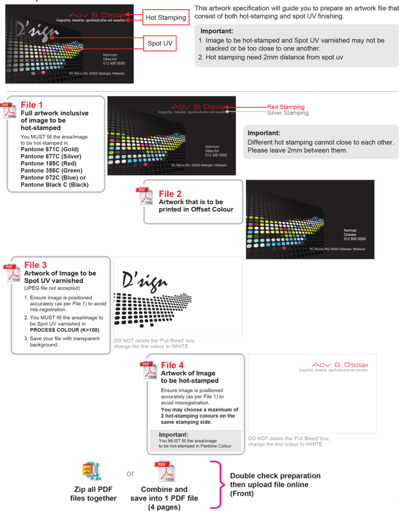 - Page 2: 1 file for the artwork without the image to be hot stamped and,