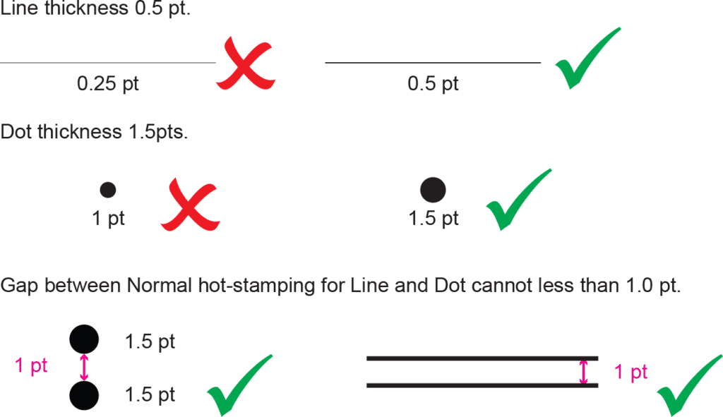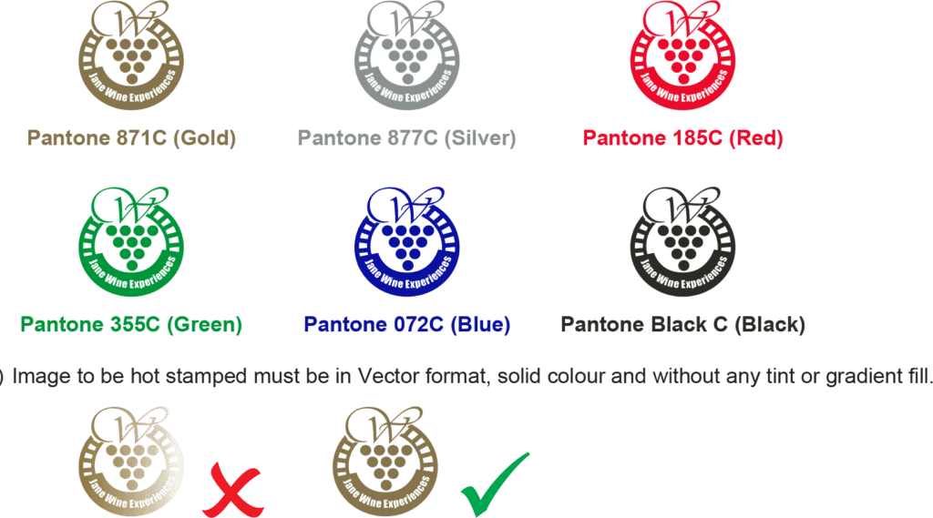5) Image to be hot stamped must be in Vector format, solid colour and without any tint or gradient fill.