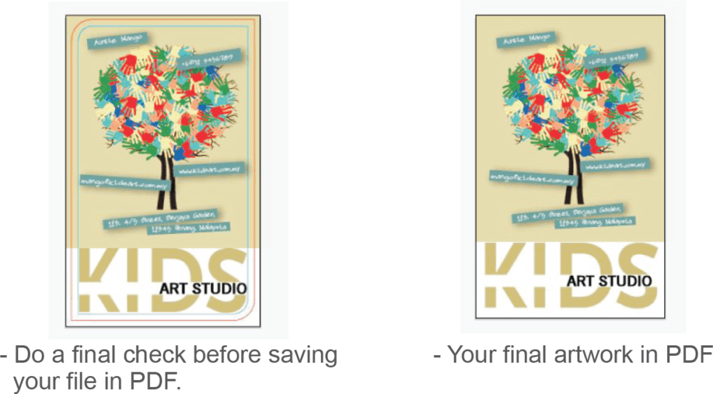 Note: Repeat these same steps for all 4 corners. Important: Please ensure all your vital elements are located inside the Safe Zone lines.