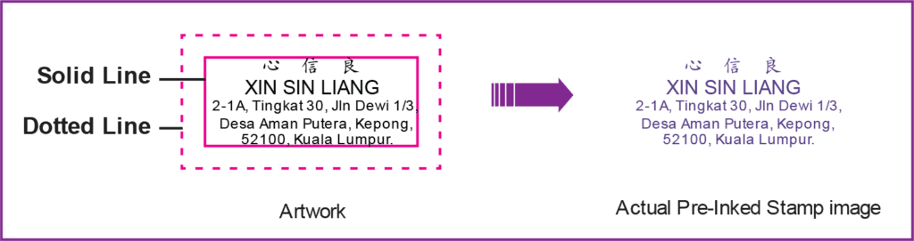 - PDF file for rubber stamp & pre-inked stamp artwork must prepare as below: