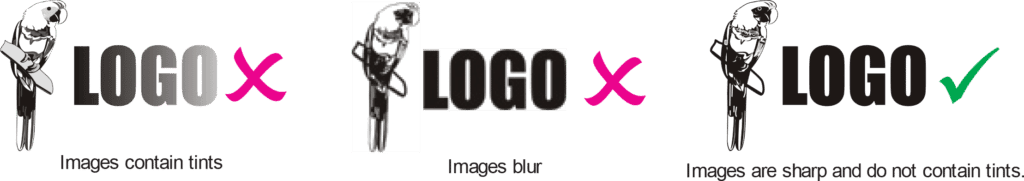 - Avoid to use bold fonts or Text which too close to each other such as Stamped images, it will smudge due to ink spread.