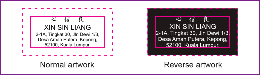 - Artwork color won’t be carry out in finished goods product, hence full black would be advise for your artwork. (for rubber stamp)