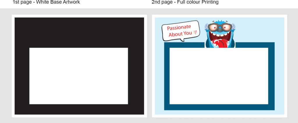 Please prepare in opposite sequence – White Base Artwork followed by Full colour Printing.