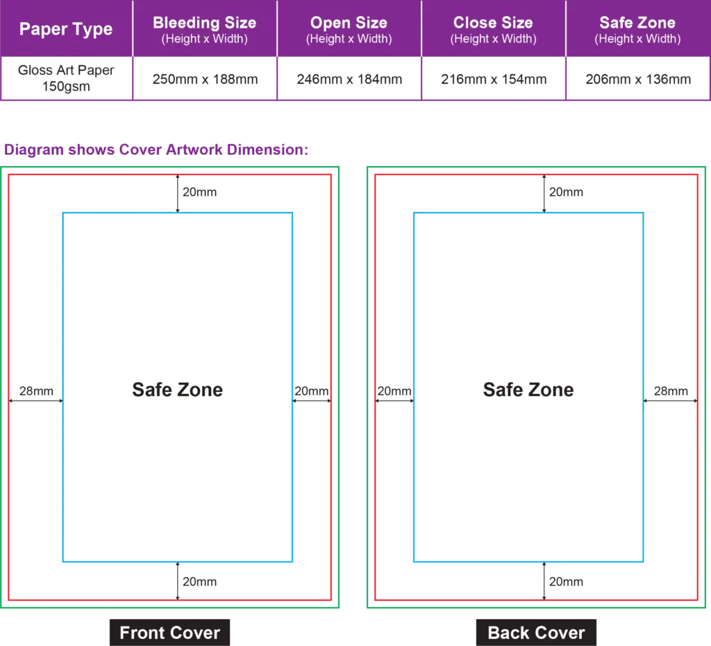 Artwork Dimension – Cover (Refer Diagram)